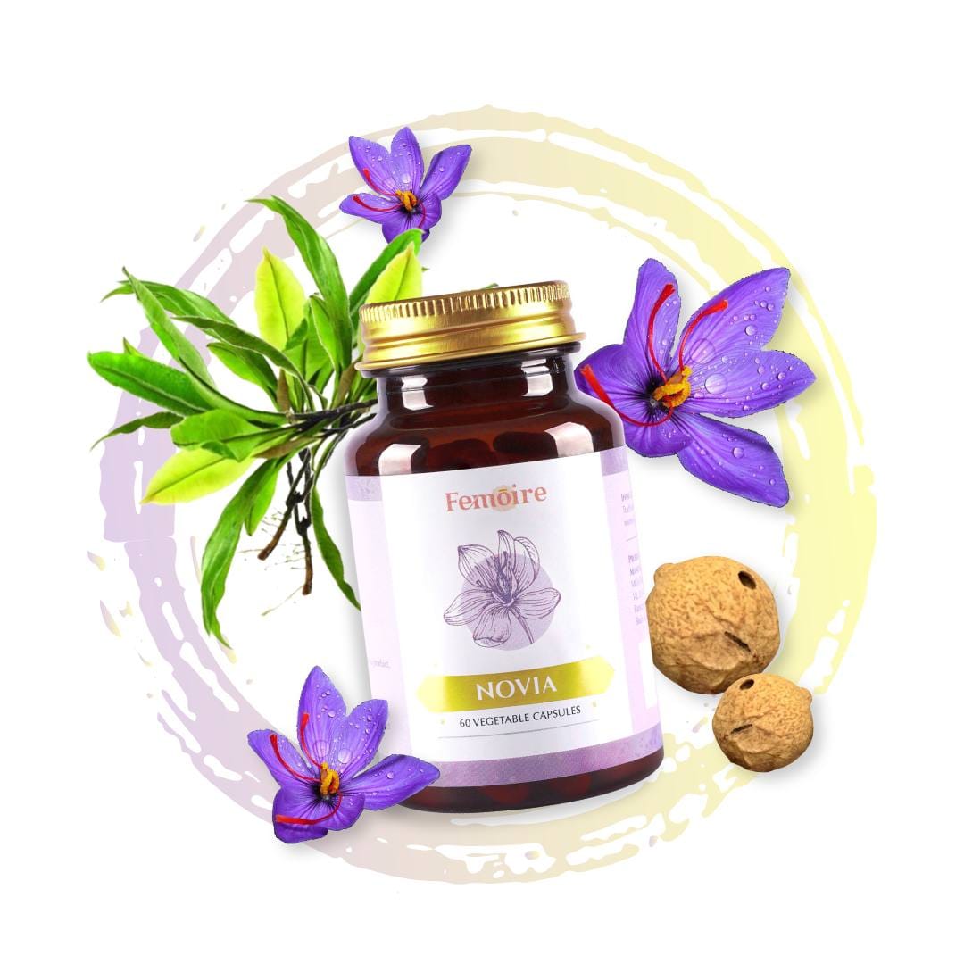 Femoire Novia 是專為女性精心配製的,讓女性重拾自信,盡享美好生活。 NOVIA 的配方包含 3 種送給女性的最佳禮物 – 藏紅花、Manjakani 和 Kacip Fatima,此外還有 4 種全天然成分:Maca、Puraria、啤酒花和葫蘆巴。使女性卵巢和荷爾蒙的健康得到充分保護。它不僅可以幫助減少女性的生理隱患,還可以協助荷爾蒙紛亂而導致的心理問題。